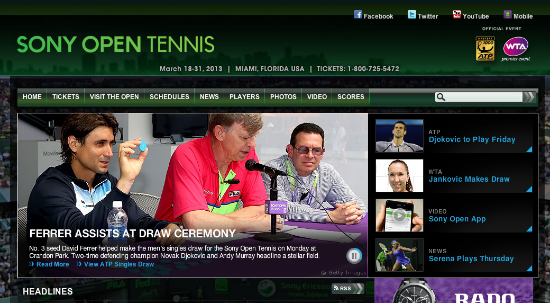 The 2013 Sony Open Tennis tournament runs from March 18 to 31.