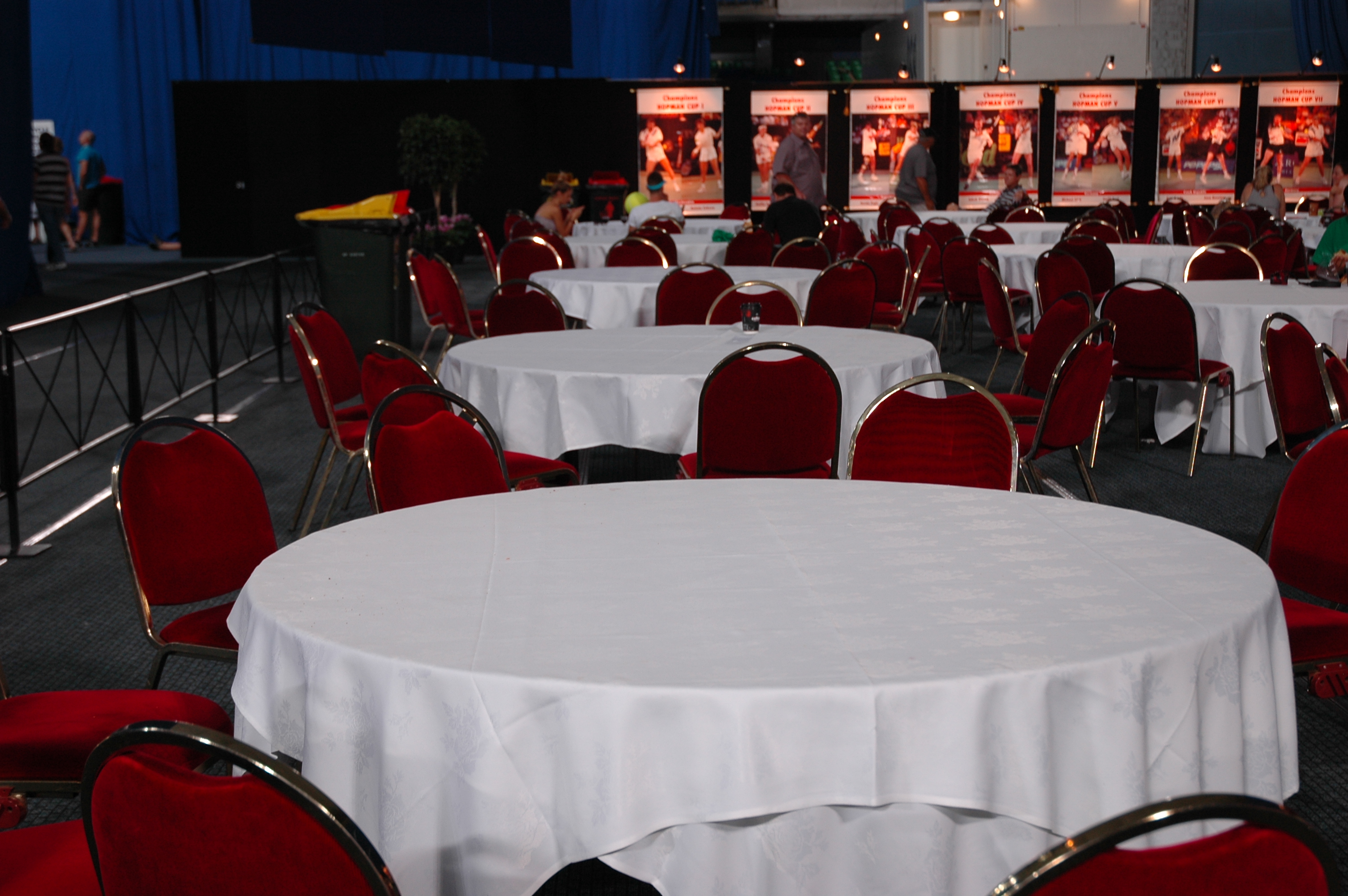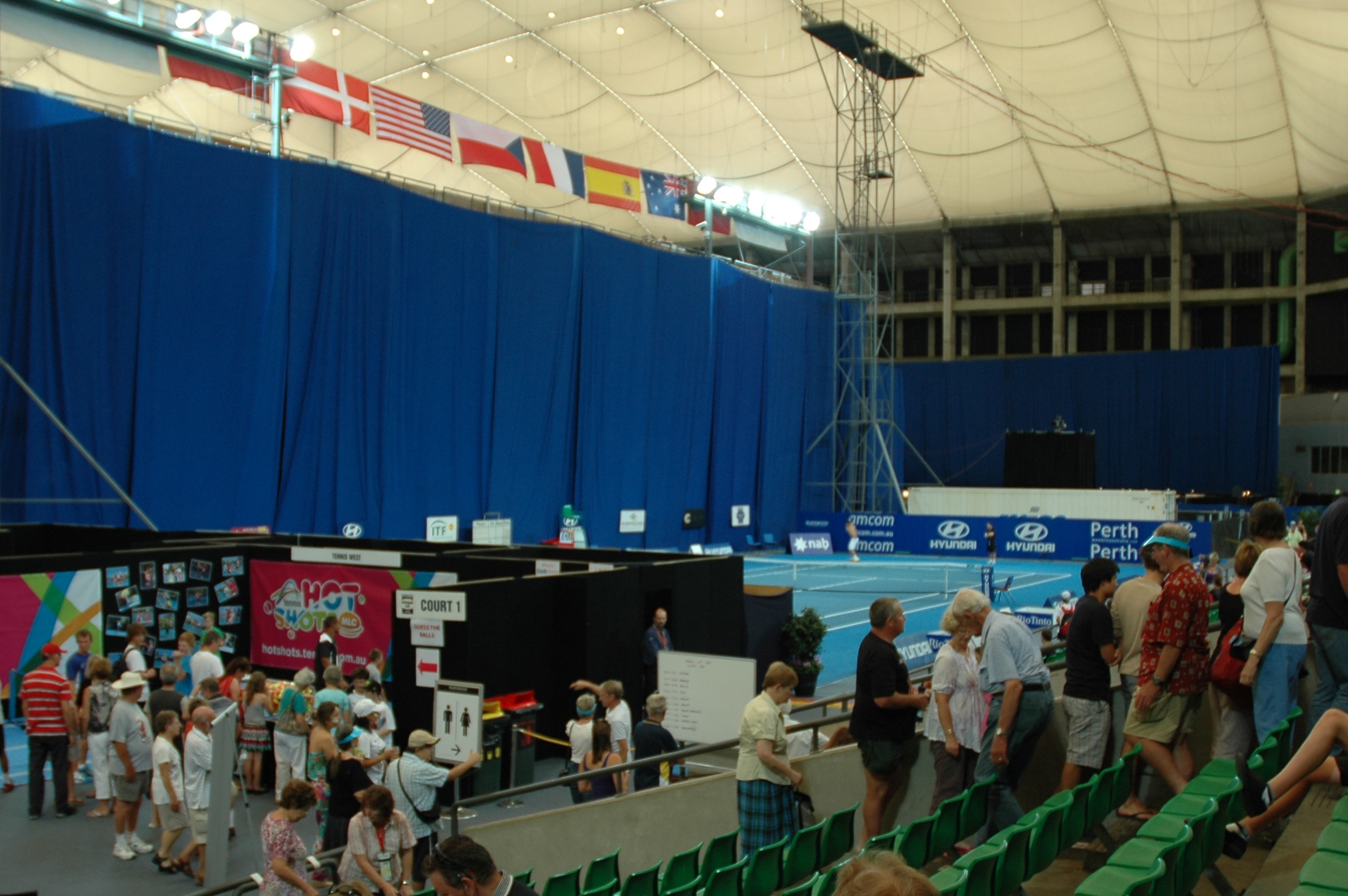 At the Hopman Cup, the practice court is right next to the centre court. Each day a schedule of who will be practicing when is provided.