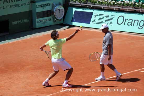 Here are some pics that I took of Rafa practicing on Court Suzanne Lenglen at Roland Garros.
