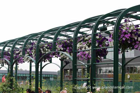 The grounds looks beautiful all decked out in floral hanging baskets which create the feel of an English country garden. As there are plenty of staff too the grounds are really well maintained. No overflowing rubbish bins or messy stuff on the walkways. The toilet queues are relatively short and move fast which is important when you’re trying to get back to your seat before the next change of ends.